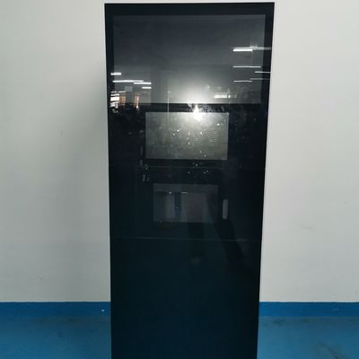 Maszyna do kawy stojąca na podłodze z zautomatyzowanym systemem upuszczania kubków i ekranem multimedialnym